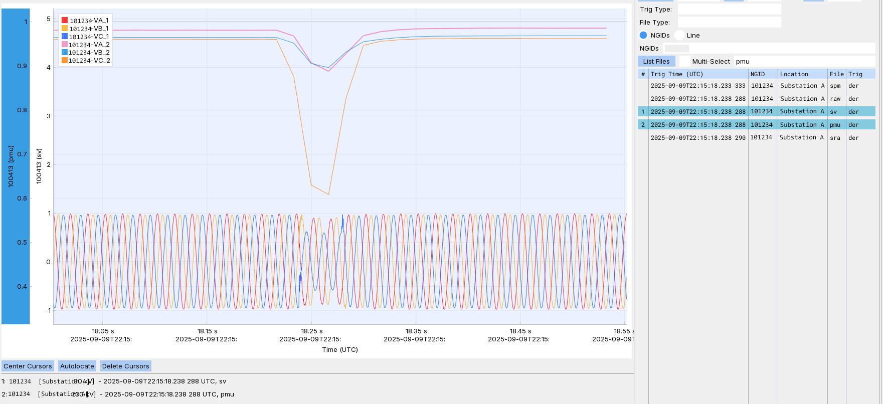 Microsecond-precision raw waveforms, sampled values, or PMU data.